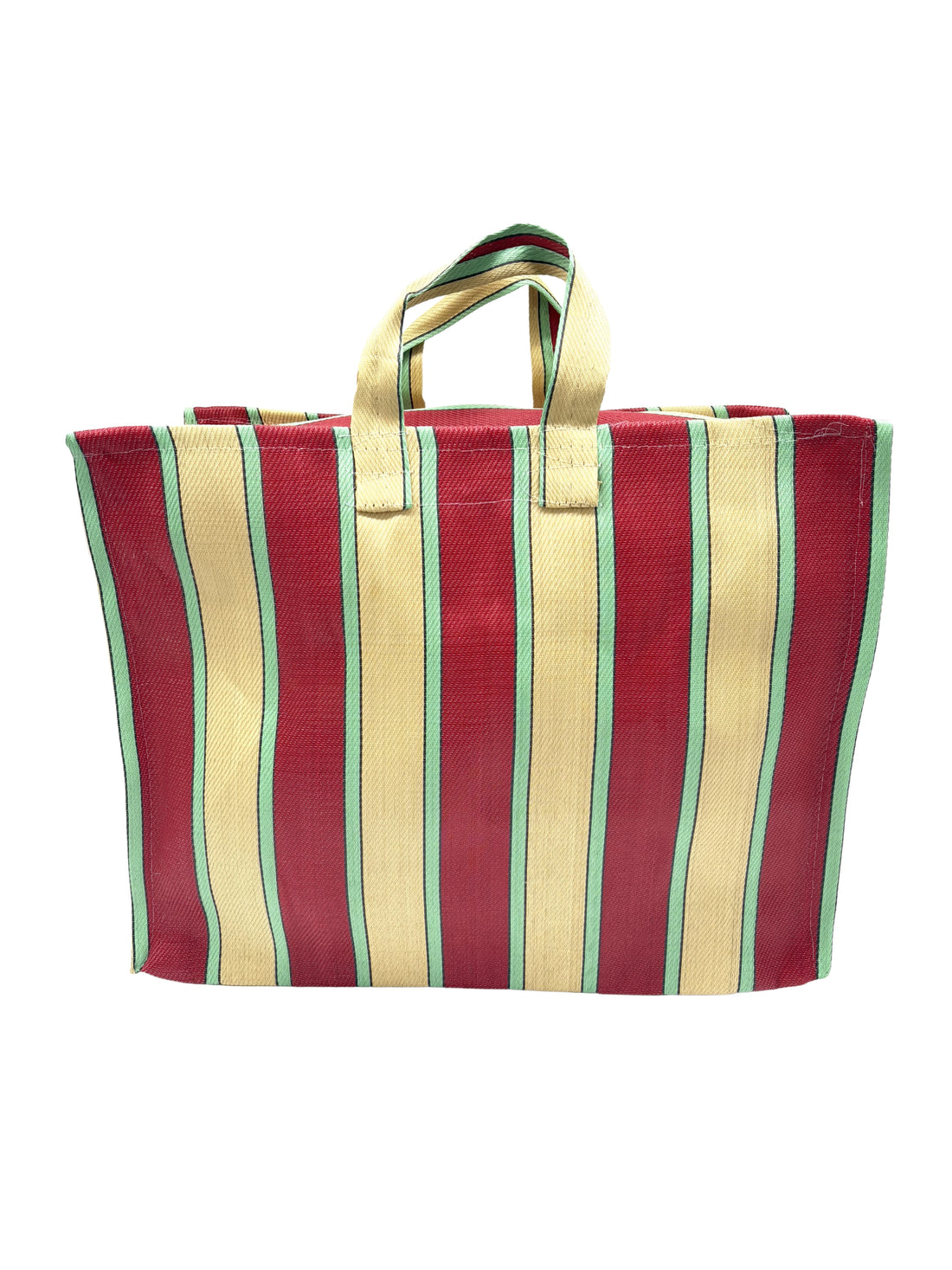 BOLSA NYLON RAYAS ROJA Y BEIGE