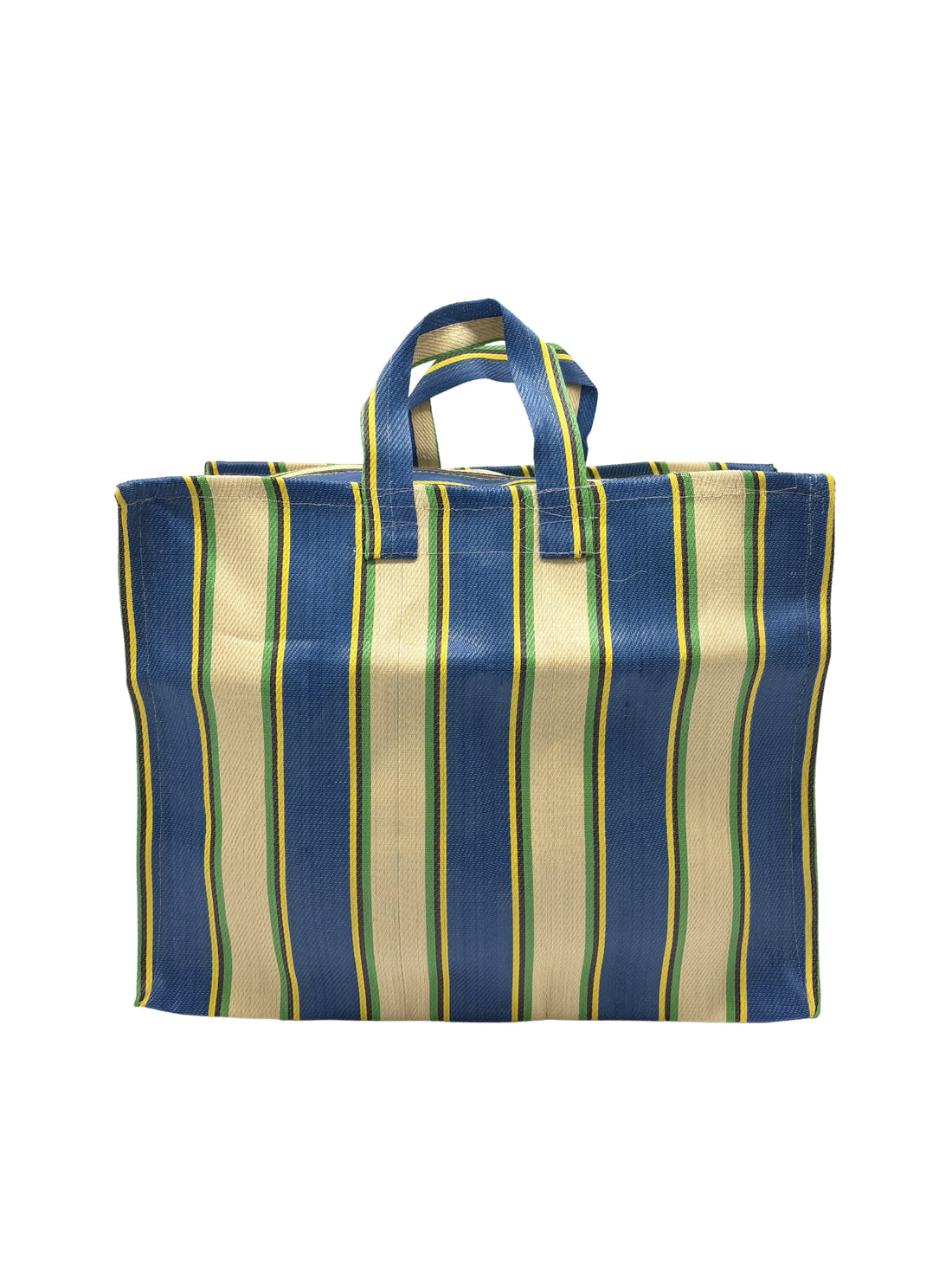 BOLSA NYLON RAYAS AZUL Y BEIGE