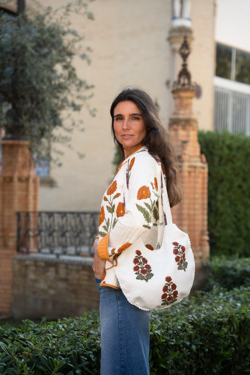 Me ha encantado, una tela buena, el color de la flor muy vivo, la camisa tiene detalles muy bonitos. Talla perfecta.