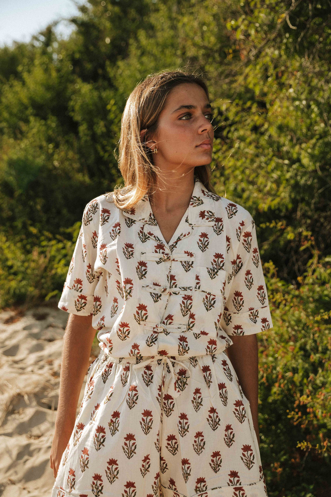 PIJAMA MANGA CORTA FLORECITAS TABACO