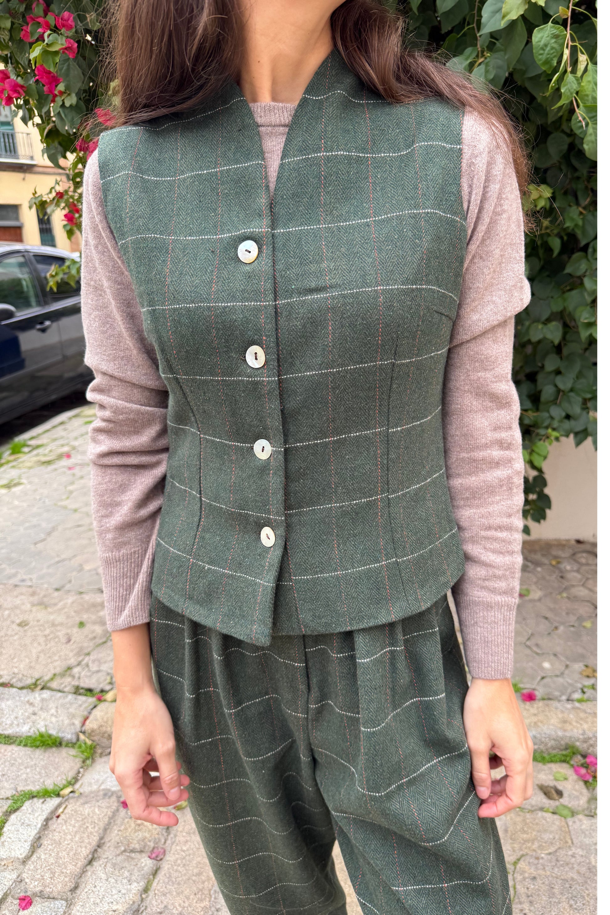 Reversible velvet vest with two side pockets. Small size. Each size corresponds to the equivalents mentioned.