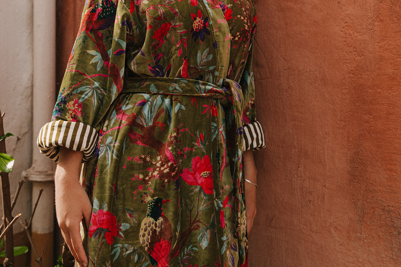 LIGHT GREEN VELVET KIMONO