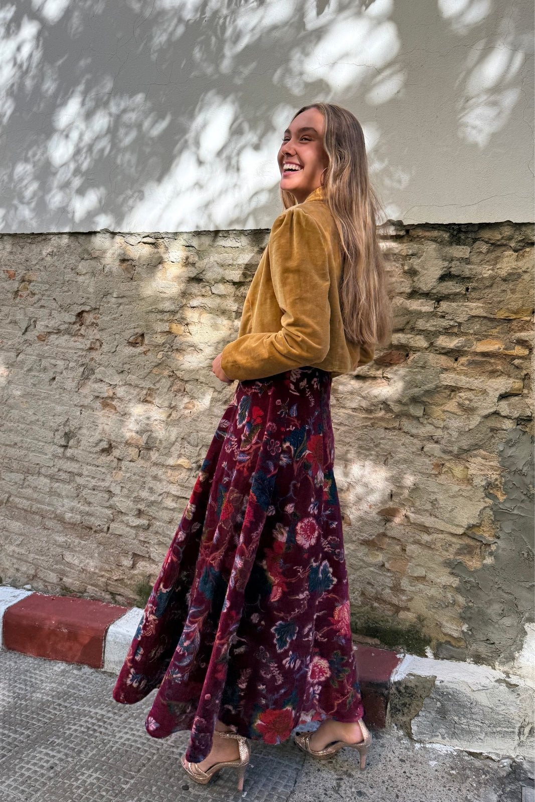 Robe à panneaux avec une coupe corset et un décolleté carré en haut avec une jupe trapèze. Comprend un dos élastique pour un meilleur ajustement et une fermeture latérale. Fabriqué en velours 100% coton. Nous réalisons les différentes impressions en utilisant la technique du blockprint, qui est réalisée avec des tampons en bois sculptés et des colorants naturels. C'est l'une des techniques les plus traditionnelles originaires d'Inde. Étant donné que le tissu est fabriqué à la main avec des colorants naturels, il peut présenter quelques taches de peinture qui ne sont pas considérées comme un défaut. Nous créons des pièces uniques et artisanales.