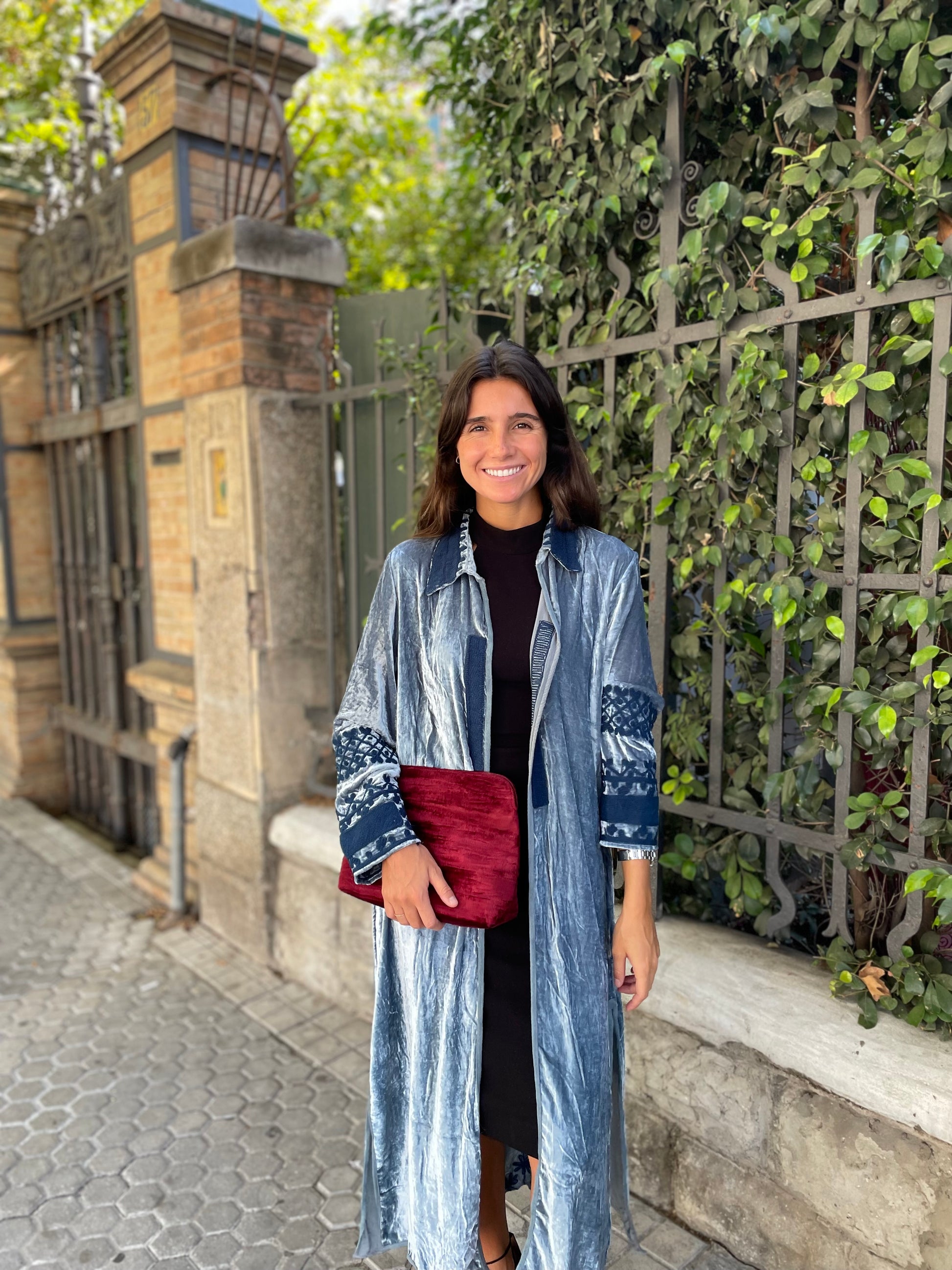 Cartera de terciopelo de seda con forro interior de seda.