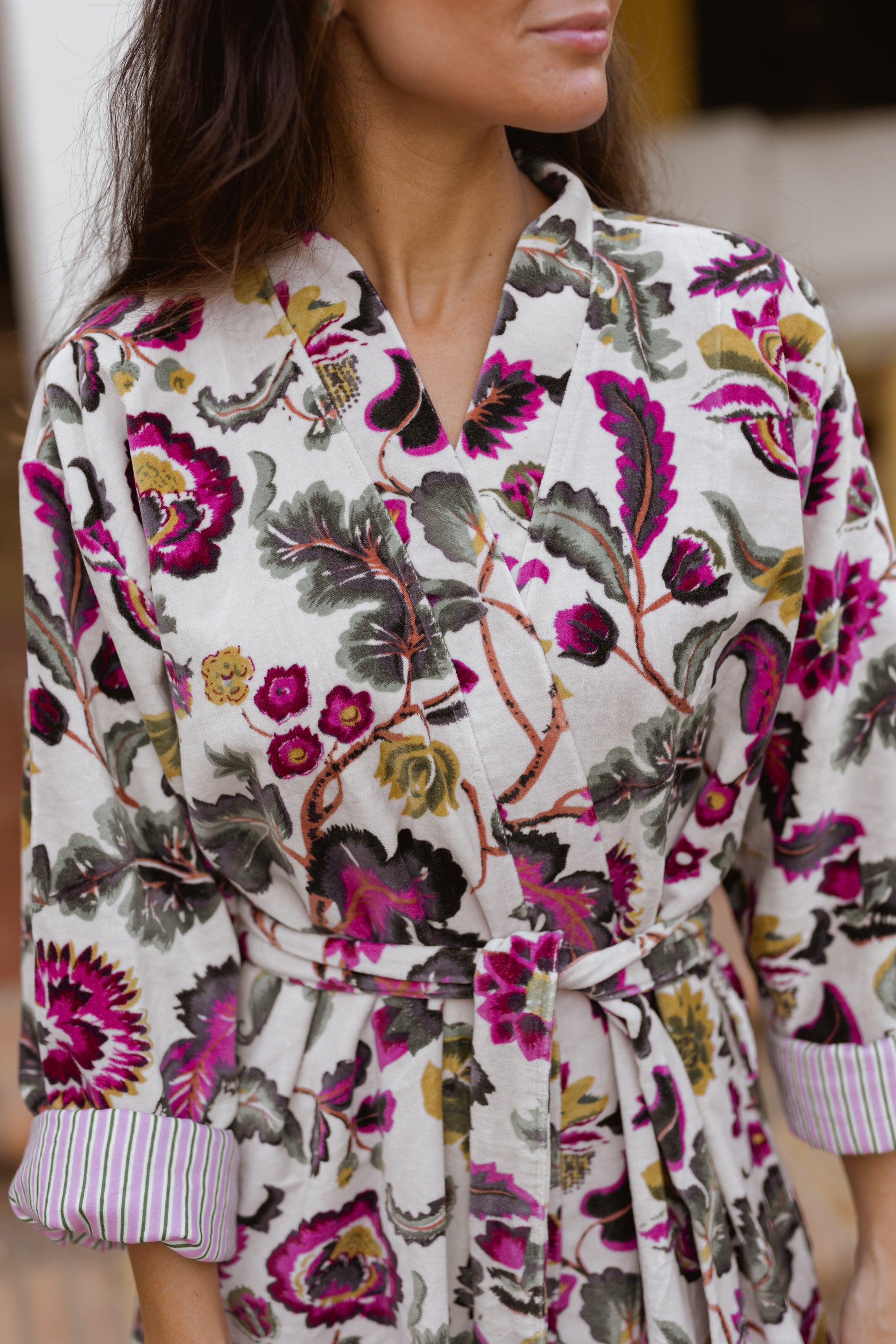 KIMONO TERCIOPELO BLANCO Y BUGANVILLA