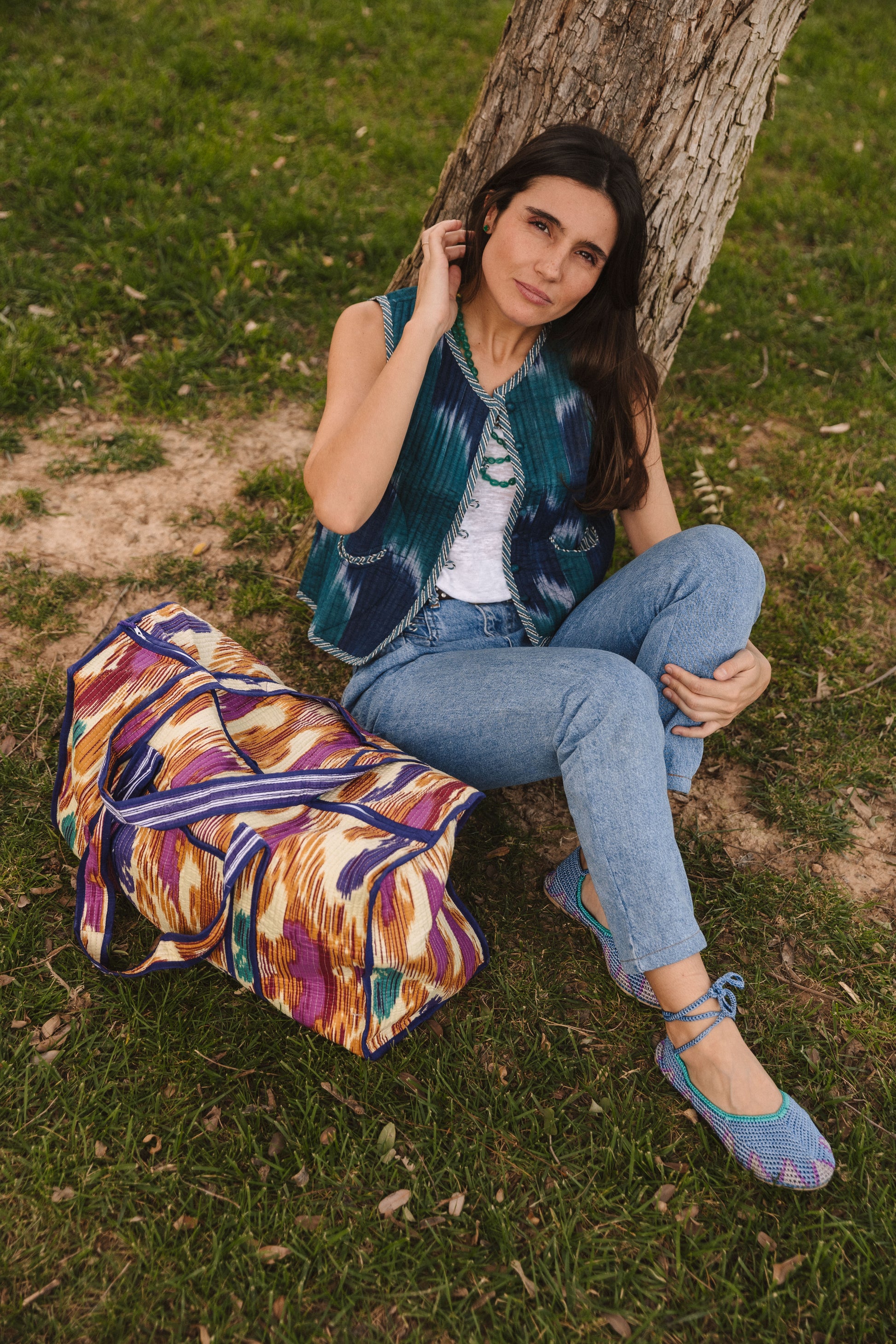 MALETA Y NECESER IKAT MORADA Y OCRE