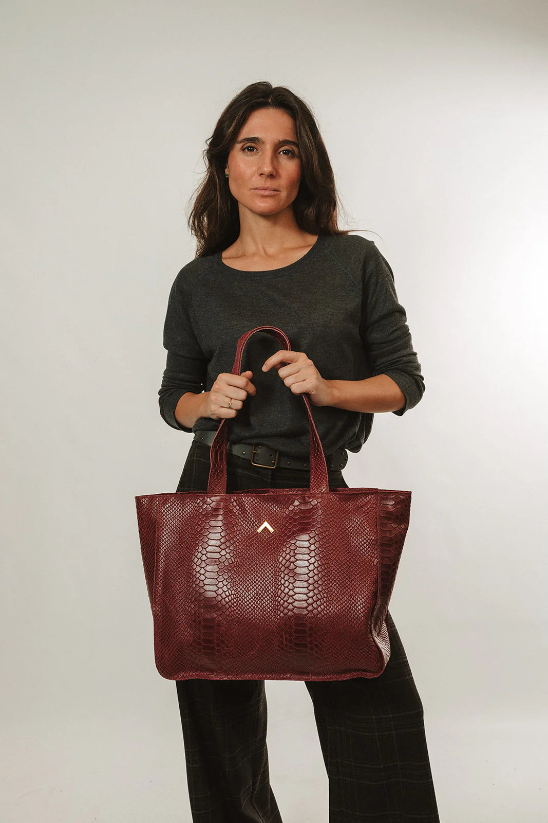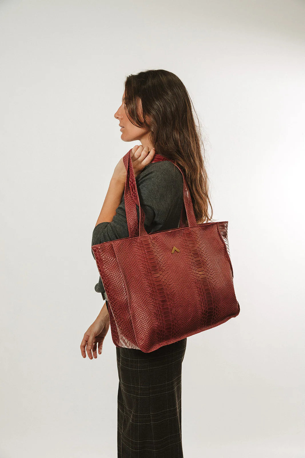 Modern es un bolso shopper de 100% de piel con efecto serpiente, ofrece capacidad sorprendente para llevarlo todo contigo con cierre de cremallera, bolsillo y forro interior. Tiene asas para colgar en el hombro. Puedes incluso personalizarlo con tus iniciales