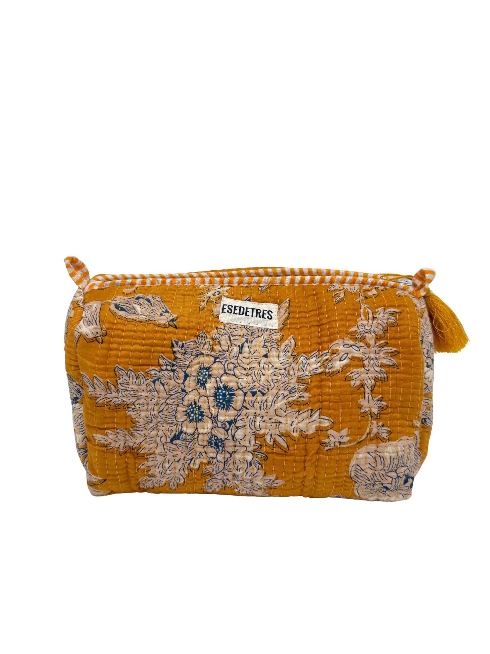 Neceser de algodón estampado con forro interior plastificado con bolsillos interiores. Cierre superior con cremallera.
