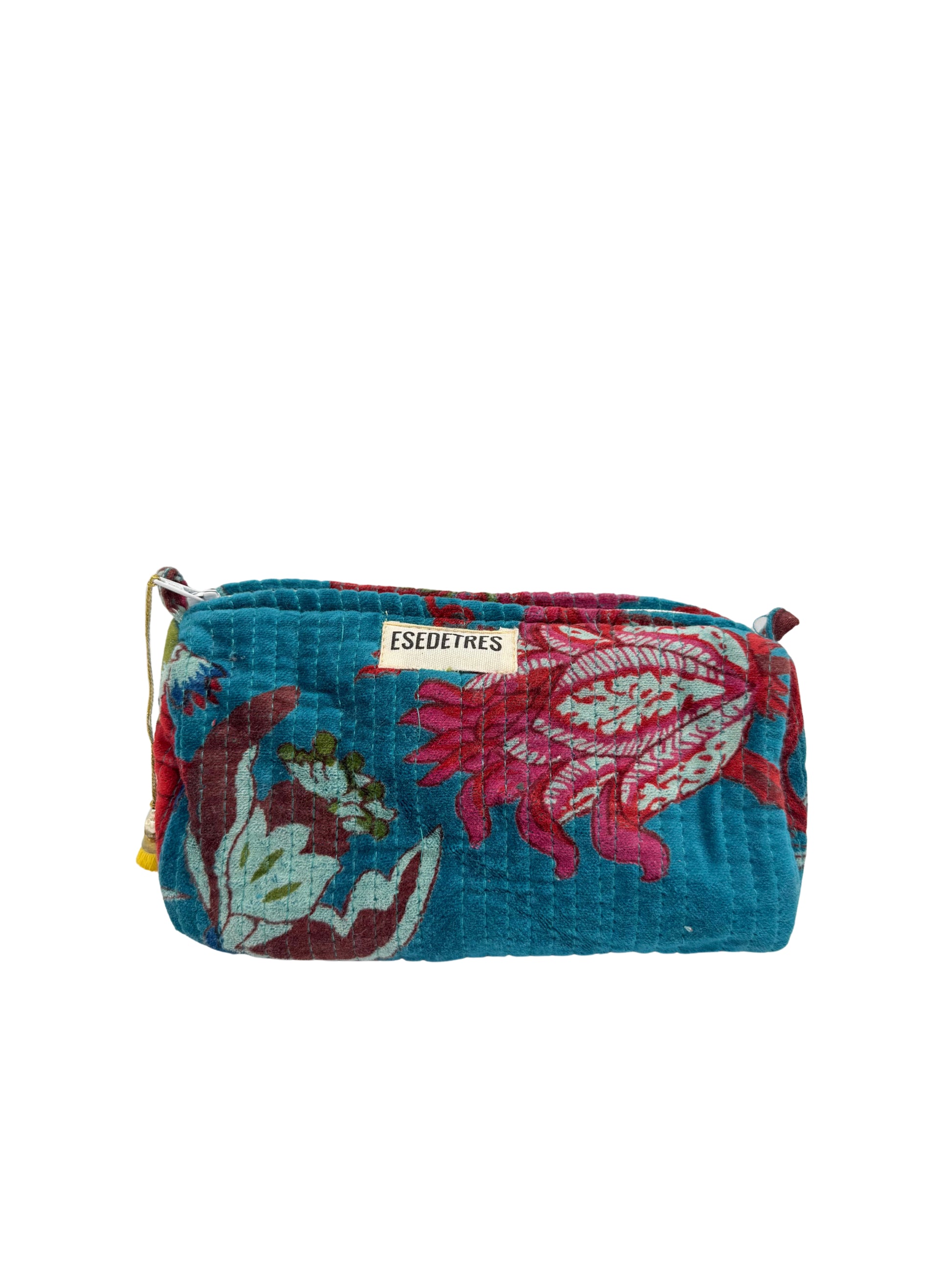 Neceser de algodón estampado con forro interior plastificado con bolsillos interiores. Cierre superior con cremallera.