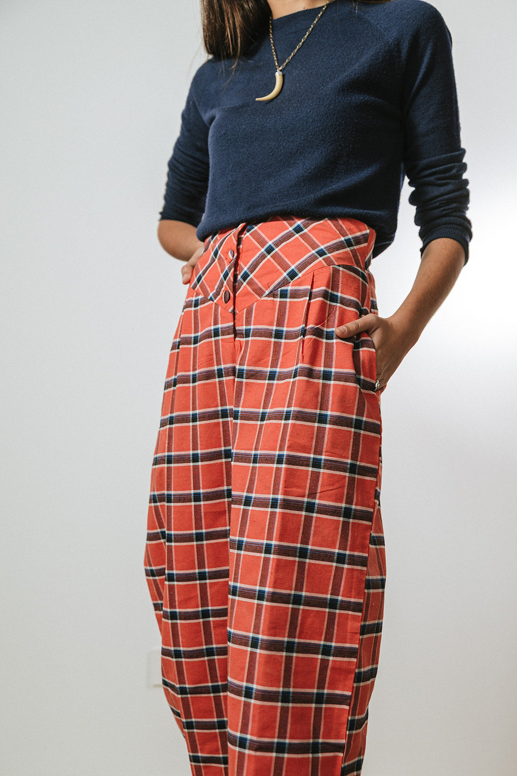 PANTALÓN CUADROS CORAL