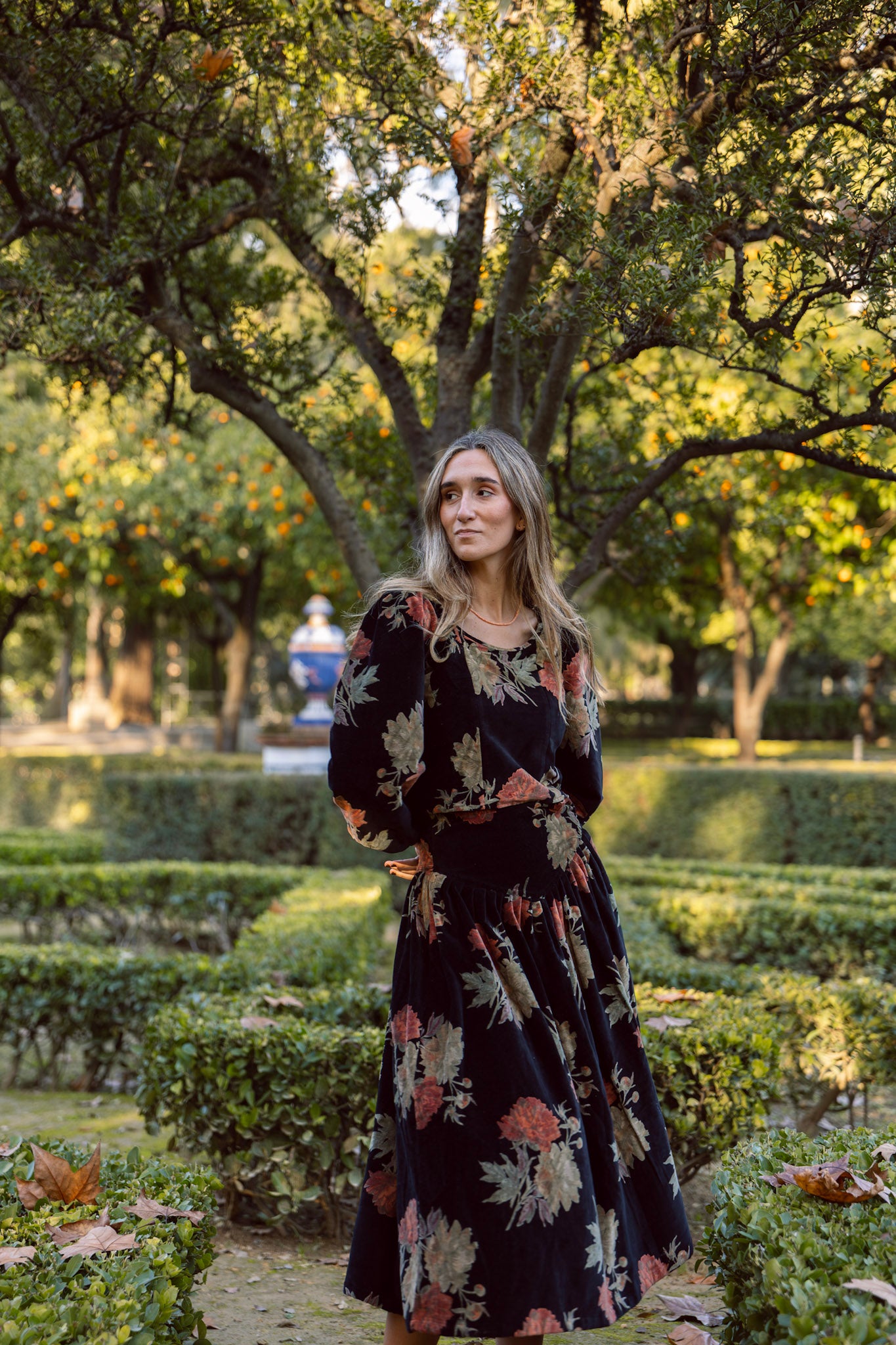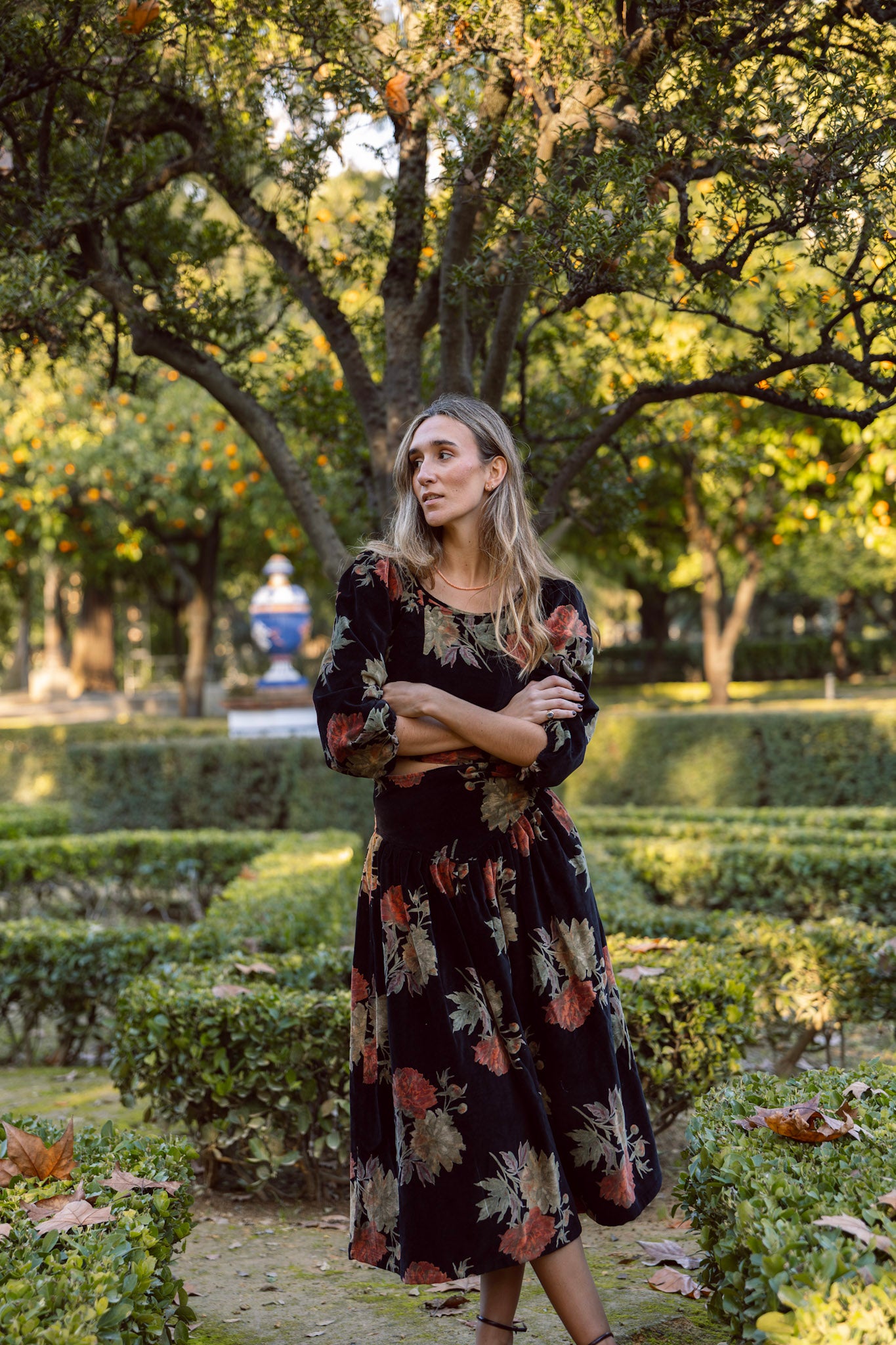Top de terciopelo negro estampado. Detalle de mangas abullonada, cuello redondo y cremallera lateral. Destaca por ser 100% terciopelo de algodón estampado. Al ser la tela hecha a mano con tintes naturales, puede presentar alguna mancha de pintura que no es considerado defecto. Creamos piezas únicas y artesanales.